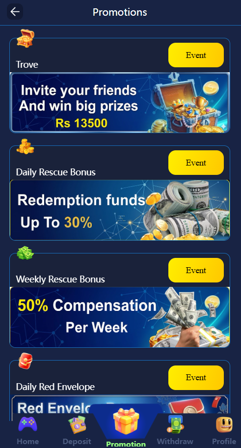 This is a latest casino-style game where players can find exciting options like Teen Patti, Aviator, and other fun games. The main reason people like this game is because it offers big wins, bonuses, and daily rewards. Many users join to test their luck and try to earn money in a simple way. The game also gives welcome bonuses and special offers, which makes it more interesting for new players.